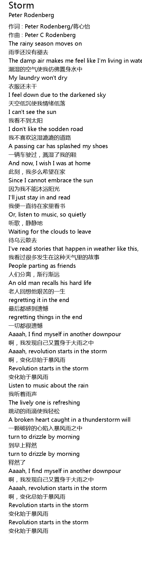 | 作词 : Peter Rodenberg/蒋心怡 | |