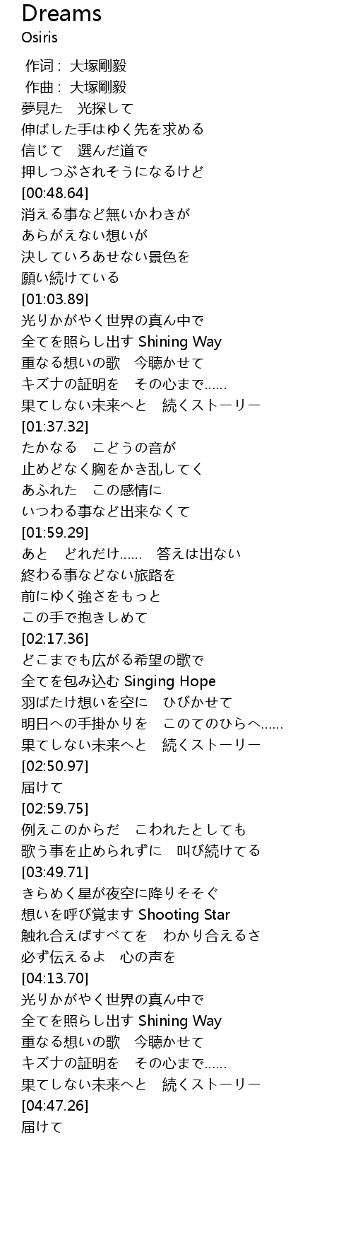 | [04:20.02] | 全てを照らし出す Shining Way |
