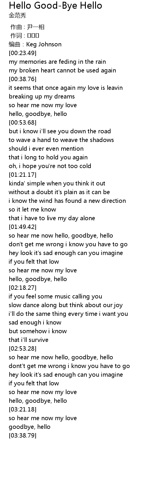 | [01:49.99] | so hear me now hello, goodbye, hello |
