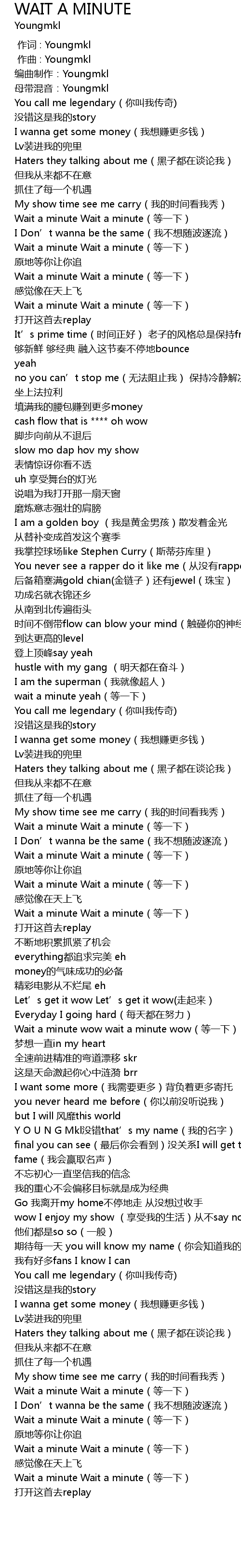 | [02:09.671] | Wait a minute wow wait a minute wow(等一下) |