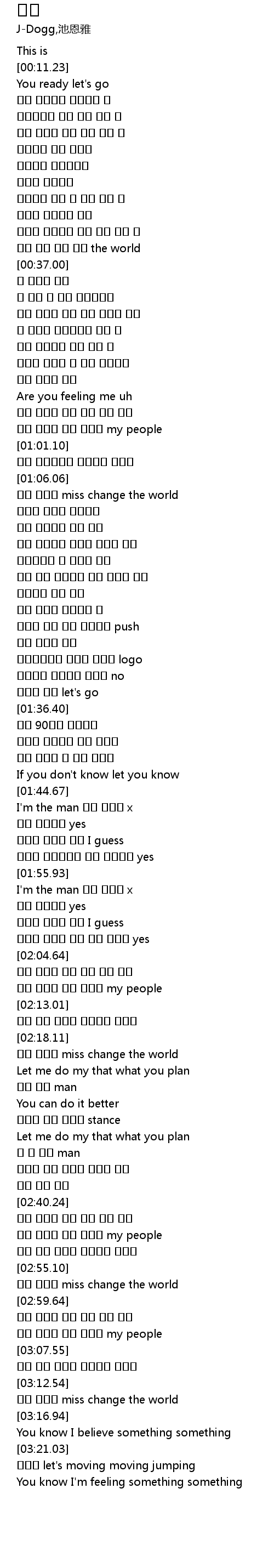 | [03:13.47] | 나를 따라와 miss change the world |