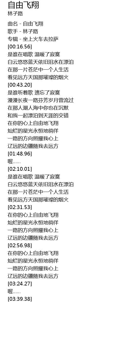 | [00:00.62] | 曲名-自由飞翔 |