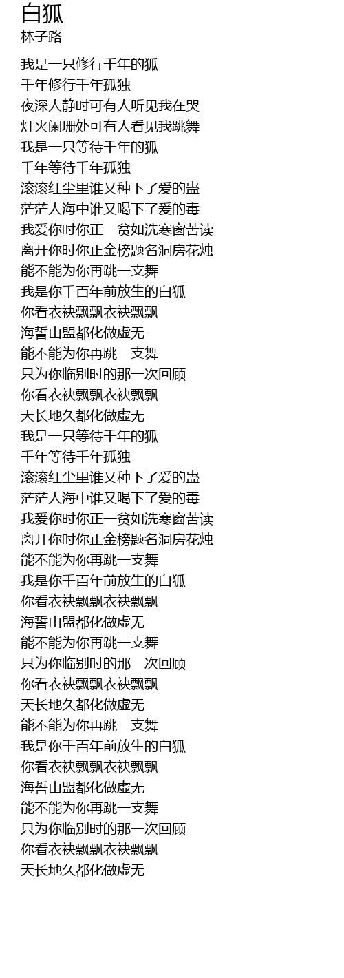 | [03:32.110] | 我是你千百年前放生的白狐 |