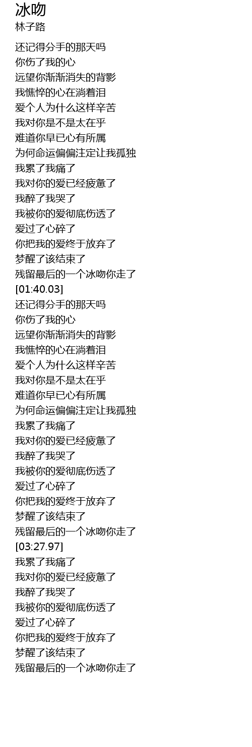 | [03:57.14] | 残留最后的一个冰吻你走了 |