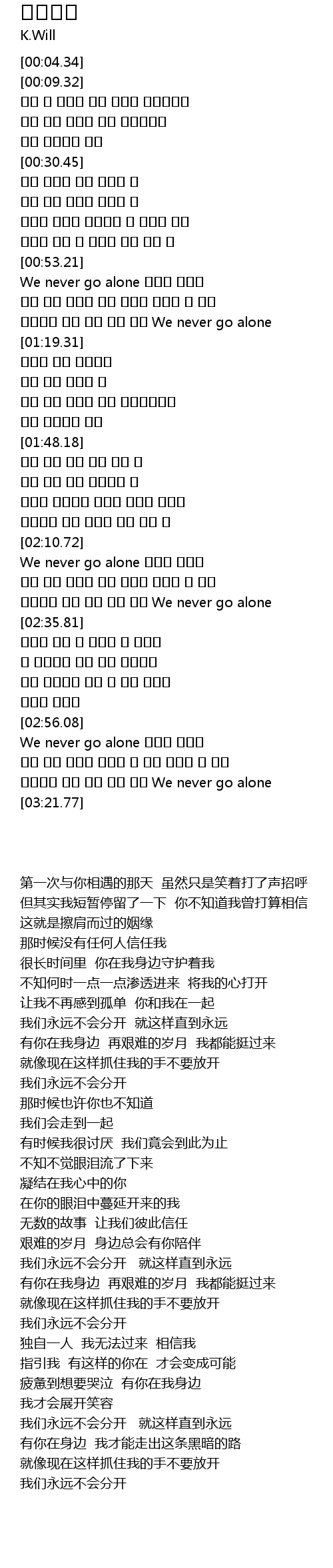 | [02:58.06] | We never go alone 이대로 영원히 |
