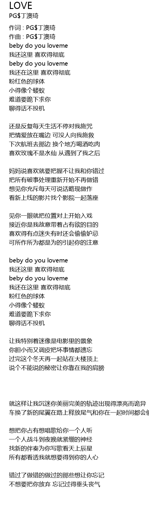 | 作词 : PG$丁澳琦 | |