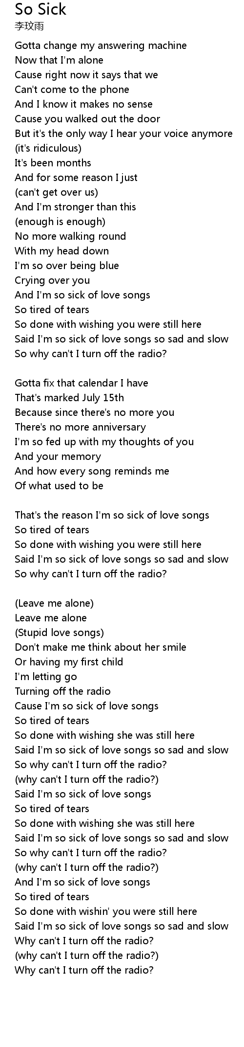 Cause I'm so sick of love songs |