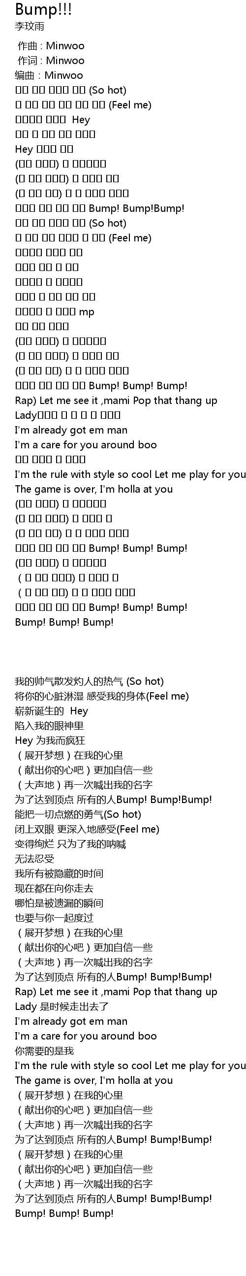 | [02:59.72] | 정상을 위해 모든 곳에 Bump! Bump! Bump! |