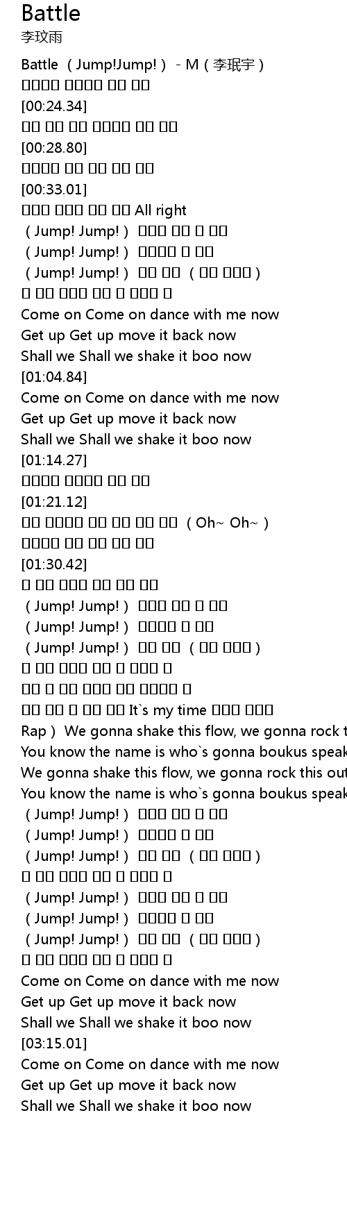 | [00:00.52] | Battle (Jump!Jump!) - M(李珉宇) |