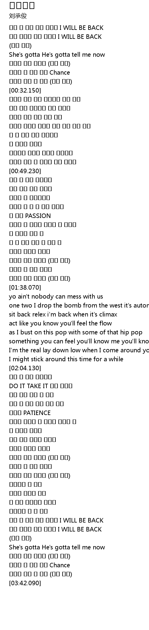 | [03:17.640] | 이젠 너에게 다시 태어나 I WILL BE BACK |