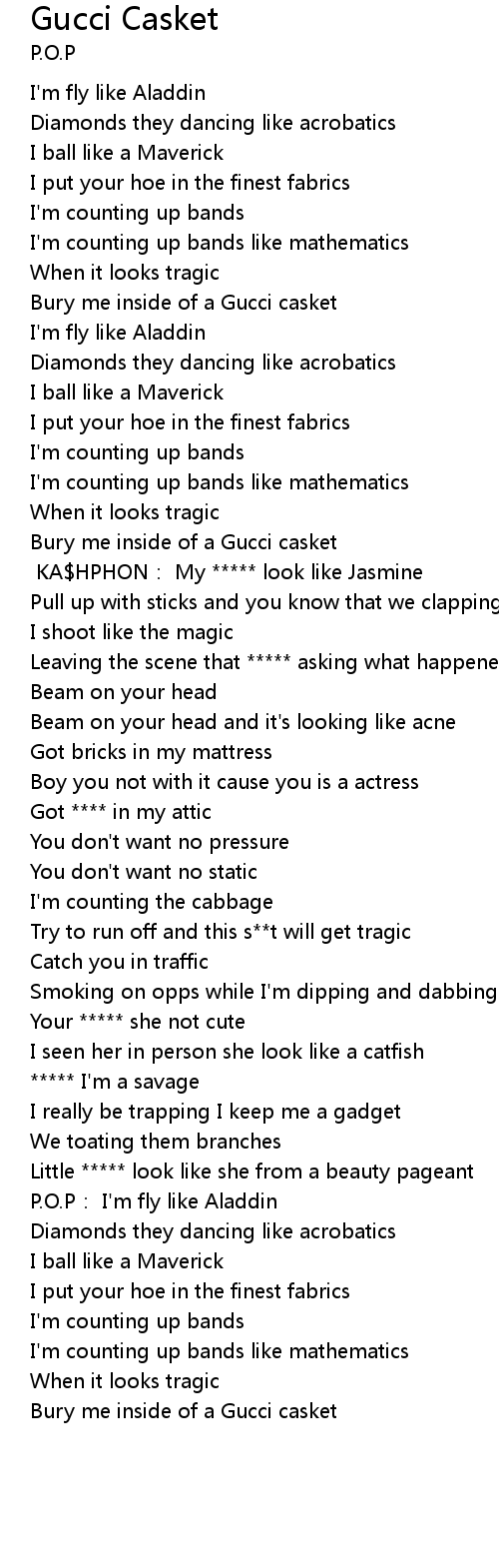 | [00:24.00] | Bury me inside of a Gucci casket |