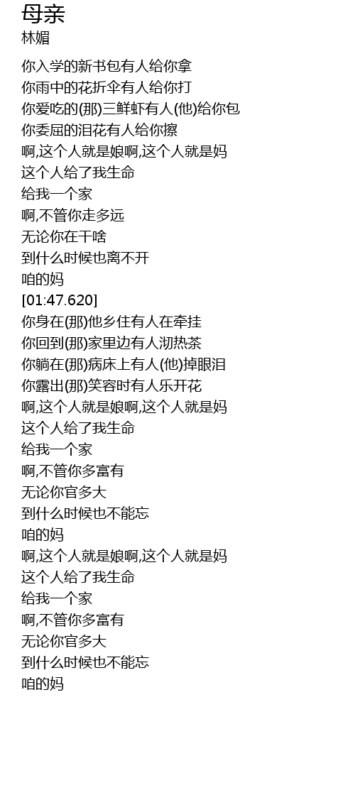 | [01:41.060] | 咱的妈 |