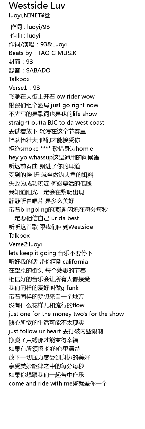 | [01:27.931] | 听听这首歌 跟我们回到Westside |