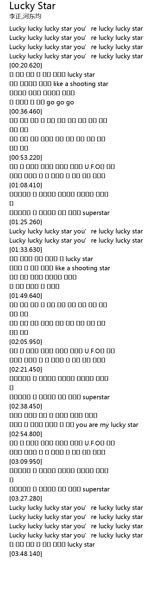 | [03:35.910] | Lucky lucky lucky star you' re lucky lucky star |