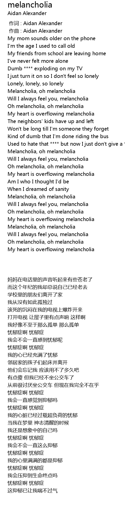 | [02:32.960] | Will I always feel you, melancholia |