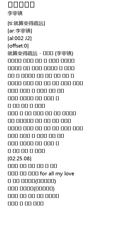 | [00:00.00] | 就算变得疏远 - 이재진 (李宰镇) |