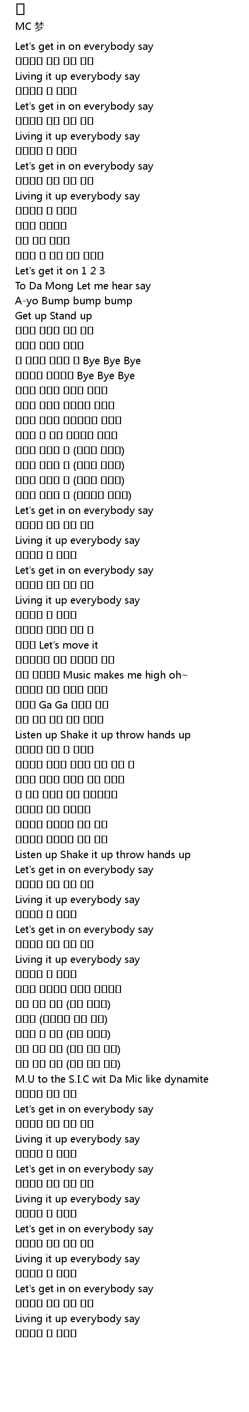 | [01:49.60] | Listen up Shake it up throw hands up |