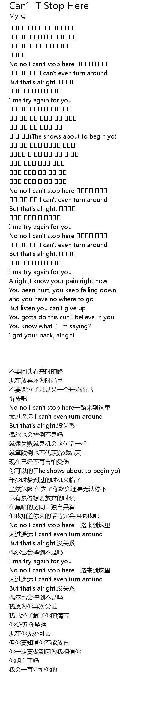 | [02:03.20] | No no I can't stop here 여기까지 왔는걸 |