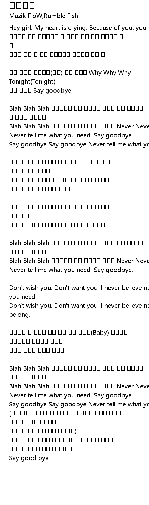 | Blah Blah Blah 떠들지좀마 자꾸 미안하다 하지마 Never Never Never | |