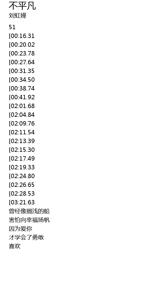 | [03:10.58][02:19.33][01:03.08] | 你给我不平凡 |