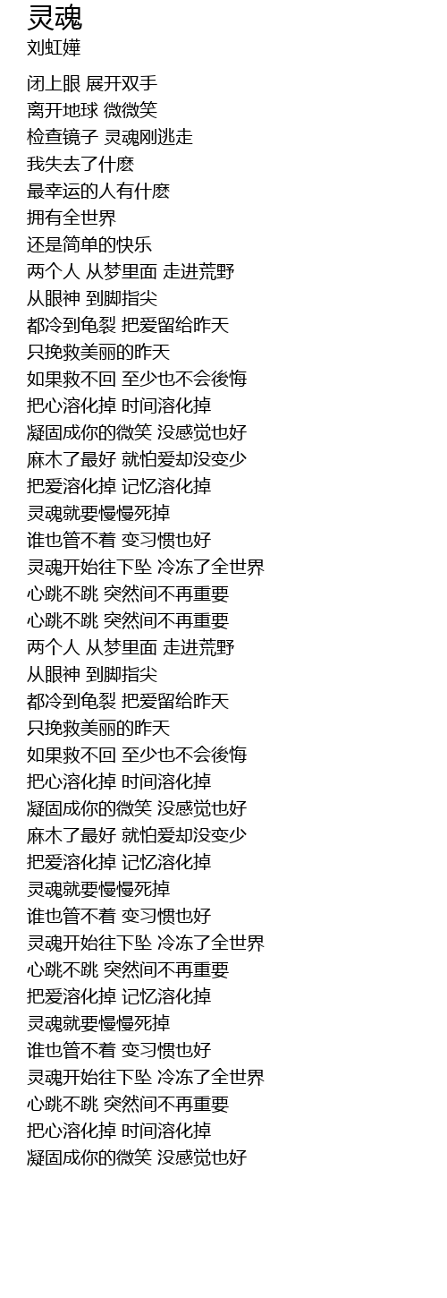 | [04:20.18] | 灵魂开始往下坠 冷冻了全世界 |