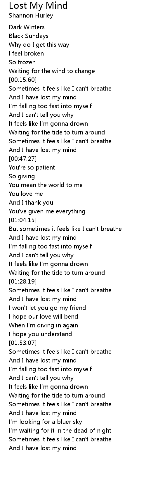 And I have lost my mind |