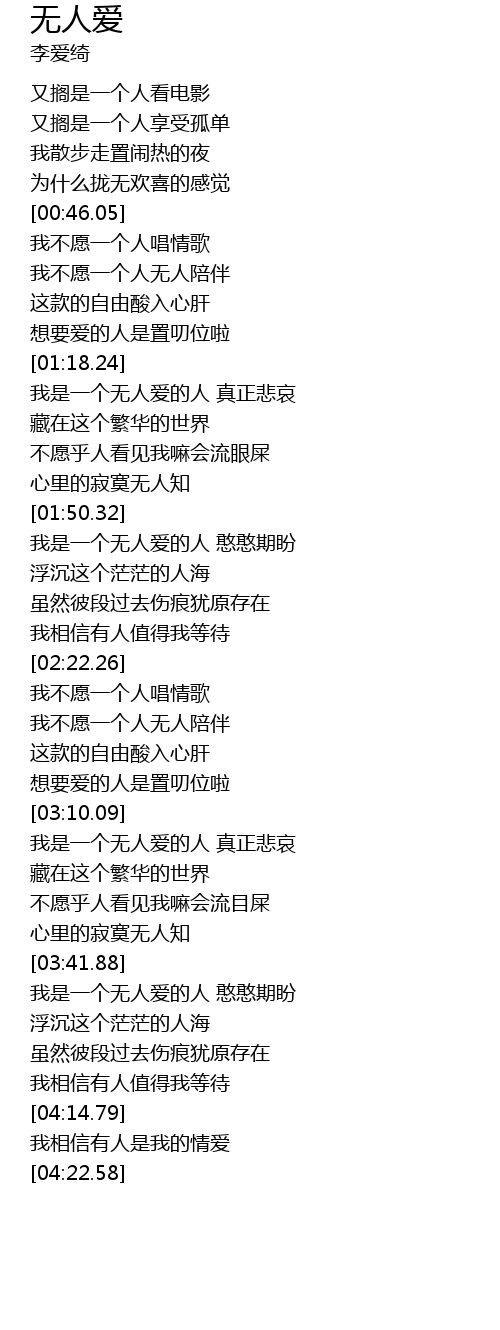 | [03:43.62] | 我是一个无人爱的人 憨憨期盼 |