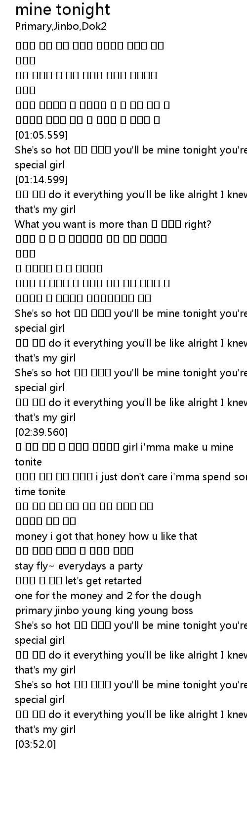 | [02:02.239] | She' s so hot you' ll be mine tonight you' re so special girl |