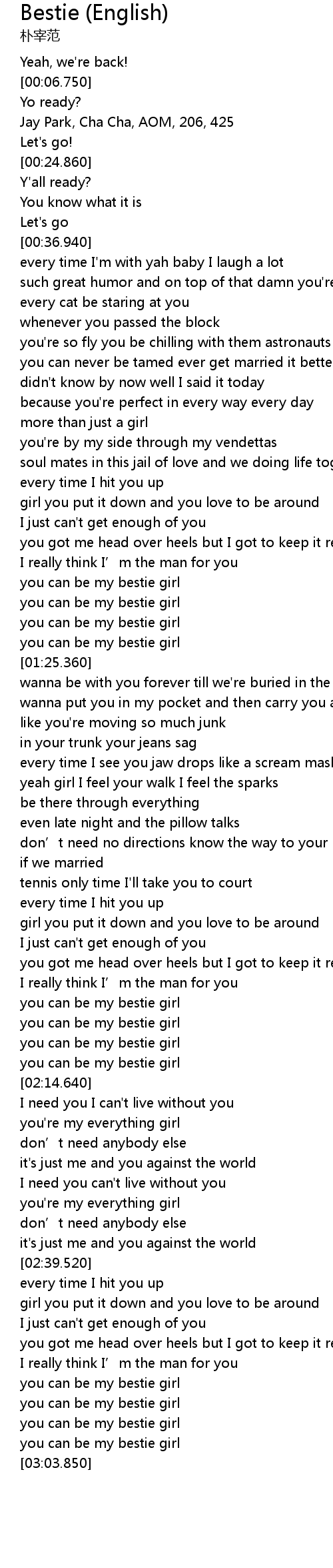 | [03:01.850] | you can be my bestie girl |