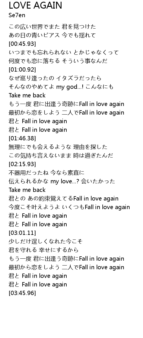 | [03:23.61] | 最初から恋をしよう 二人でFall in love again |