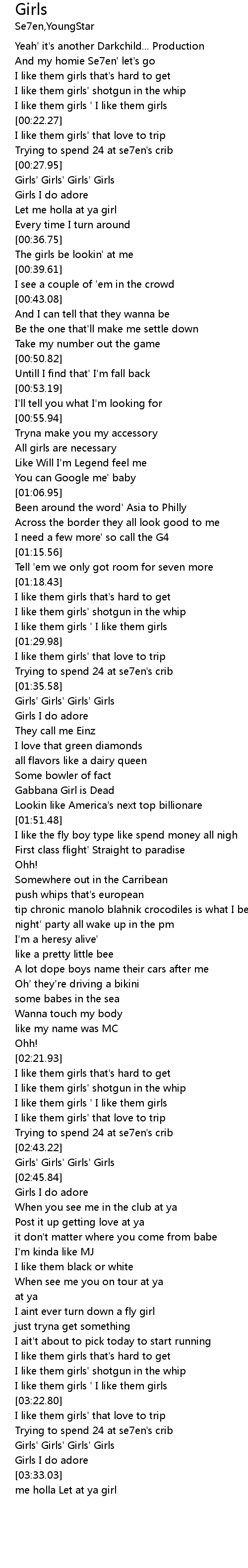| [03:29.16] | Girls' Girls' Girls' Girls |