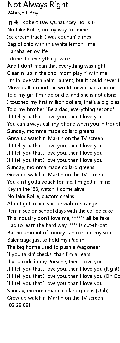 | [02:06.02] | If I tell you that I love you, then I love you Right |