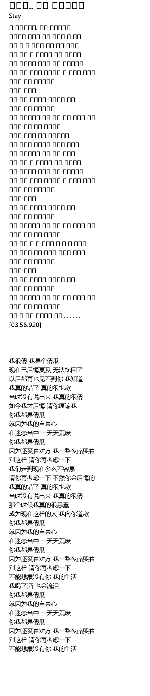 | [03:16.490] | 당신은 나는 바보입니다 |