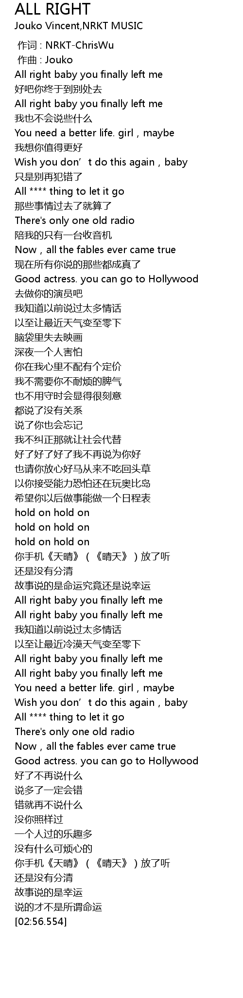 | [00:00.000] | 作词 : NRKT-ChrisWu |
