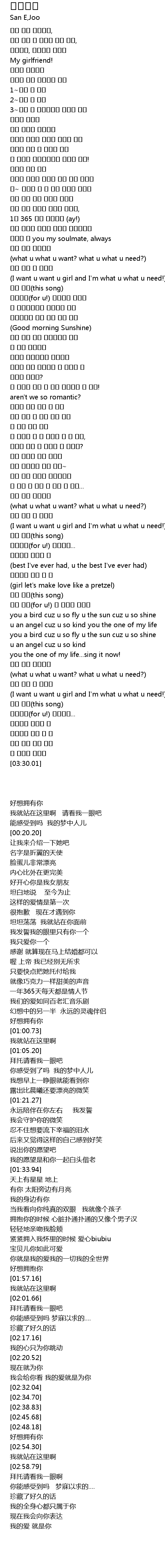 | [00:27.50] | 3~니가 내 여자친구라 너무나 기뻐 |