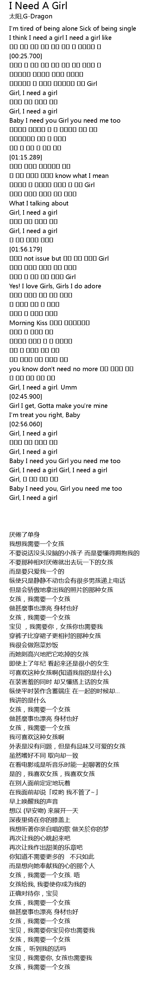 | [03:14.500] | Girl, I need a girl Girl, I need a girl |