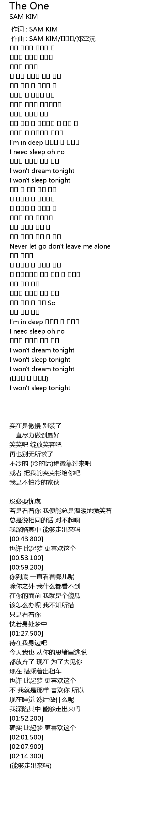| [00:00.000] | 作词 : SAM KIM |