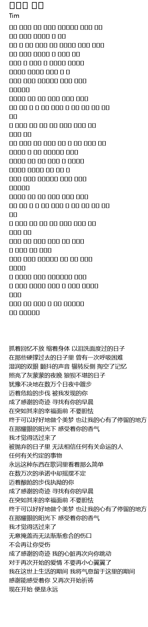 고마운 기적이 시작된거야 다시 나의 가슴이 뛰는거야 |