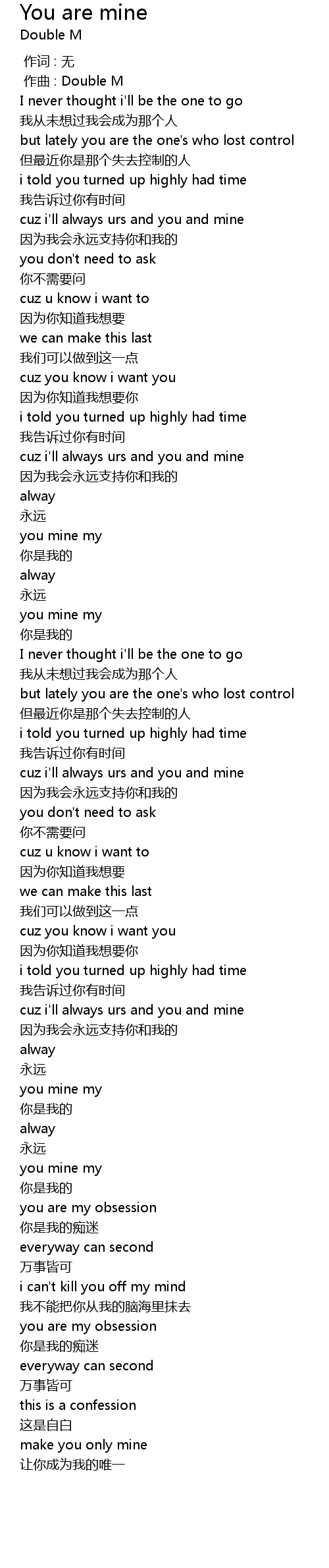 | [01:58.451] | cuz i'll always urs and you and mine |