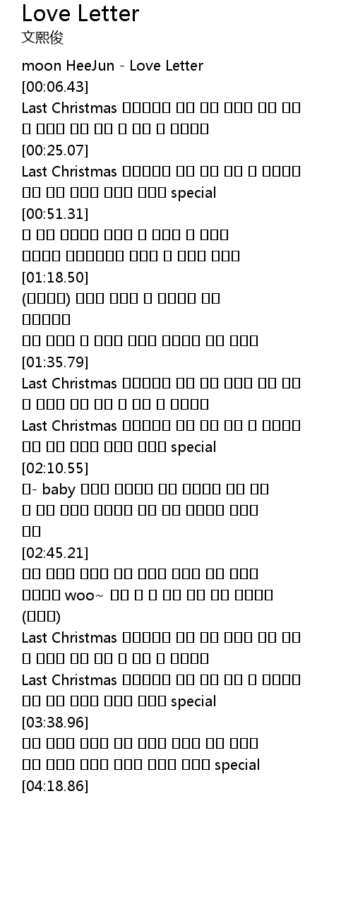 | [03:03.21] | Last Christmas 이번만큼은 어떤 일이 있어도 함께 할게 |