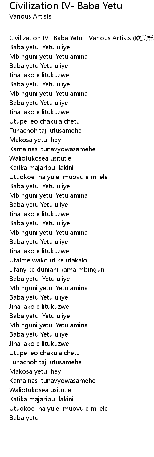 | Civilization IV Baba Yetu Various Artists ōu měi qún xīng | |