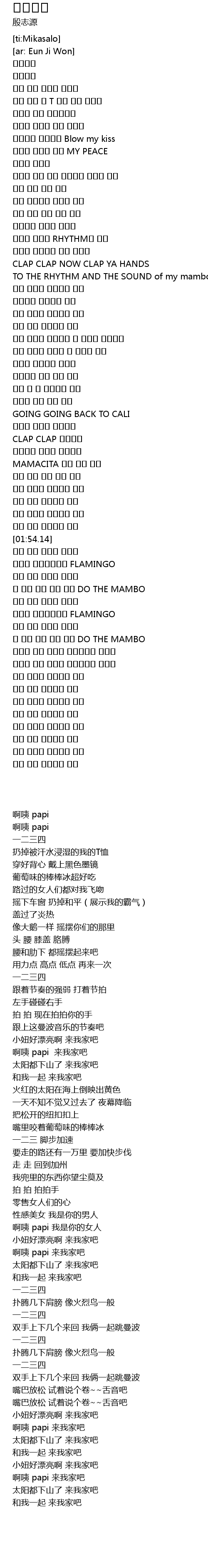 | [00:54.87] | TO THE RHYTHM AND THE SOUND of my mambo band |