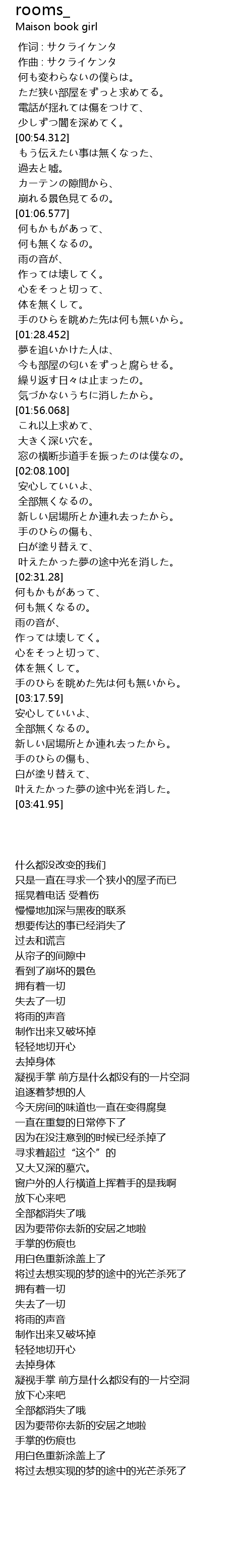 | [00:40.001] | ただ狭い部屋をずっと求めてる。 |