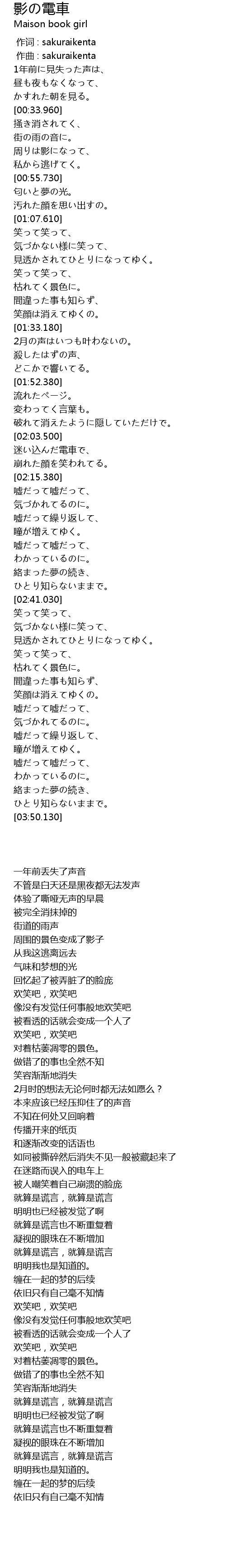 | [00:01.000] | 作曲 : sakuraikenta |