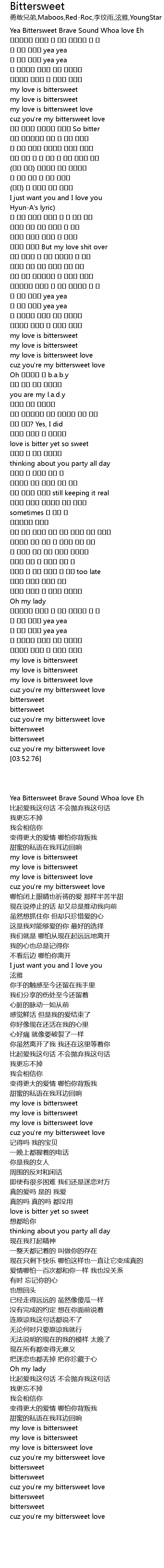 | [00:03.60] | Yea Bittersweet Brave Sound Whoa love Eh |