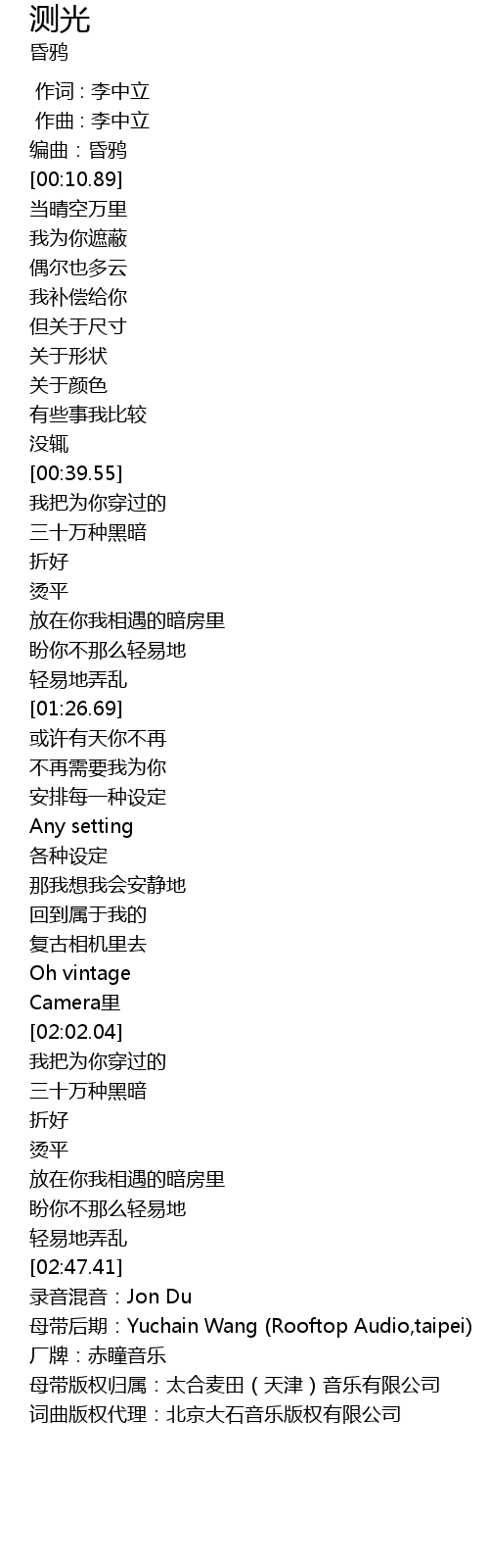 | Song | 测光 |