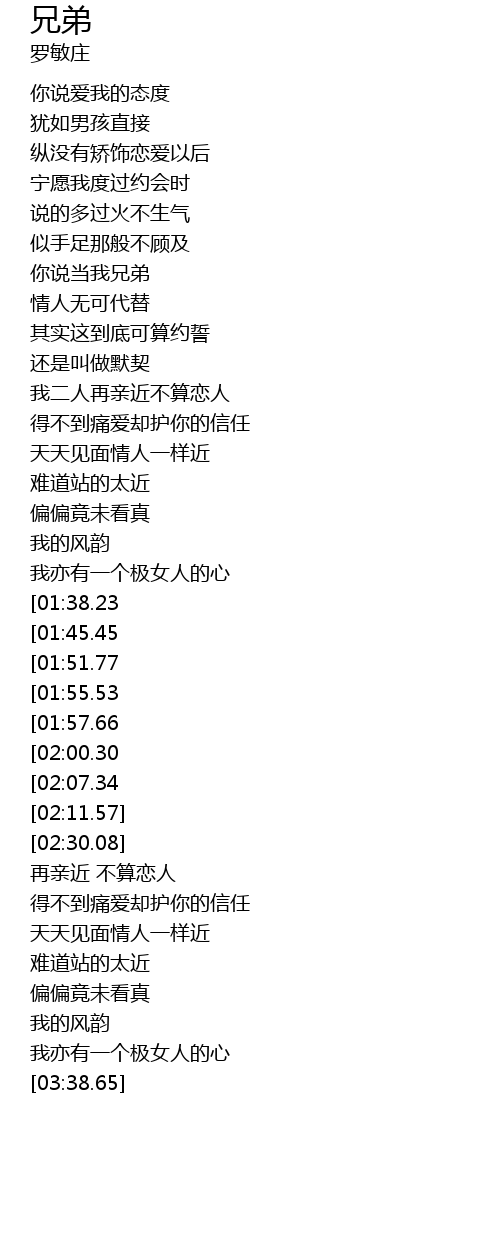 | [03:03.19][01:38.23] | 似兄弟不似恋人 |
