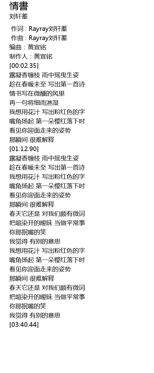 | [00:00.523] | 作曲 : Rayray刘轩蓁 |