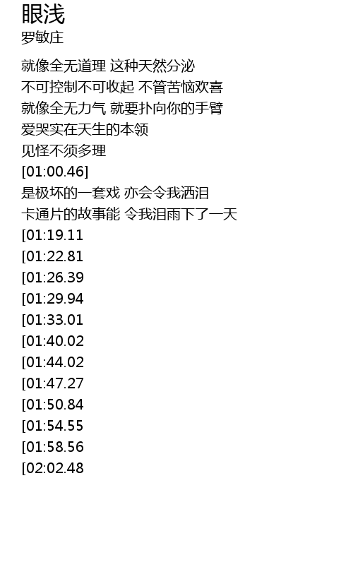 | [02:48.39][01:19.11] | 伤心得哭了 随便地哭 |