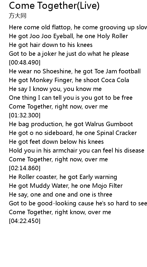 Come Together, right know, over me |